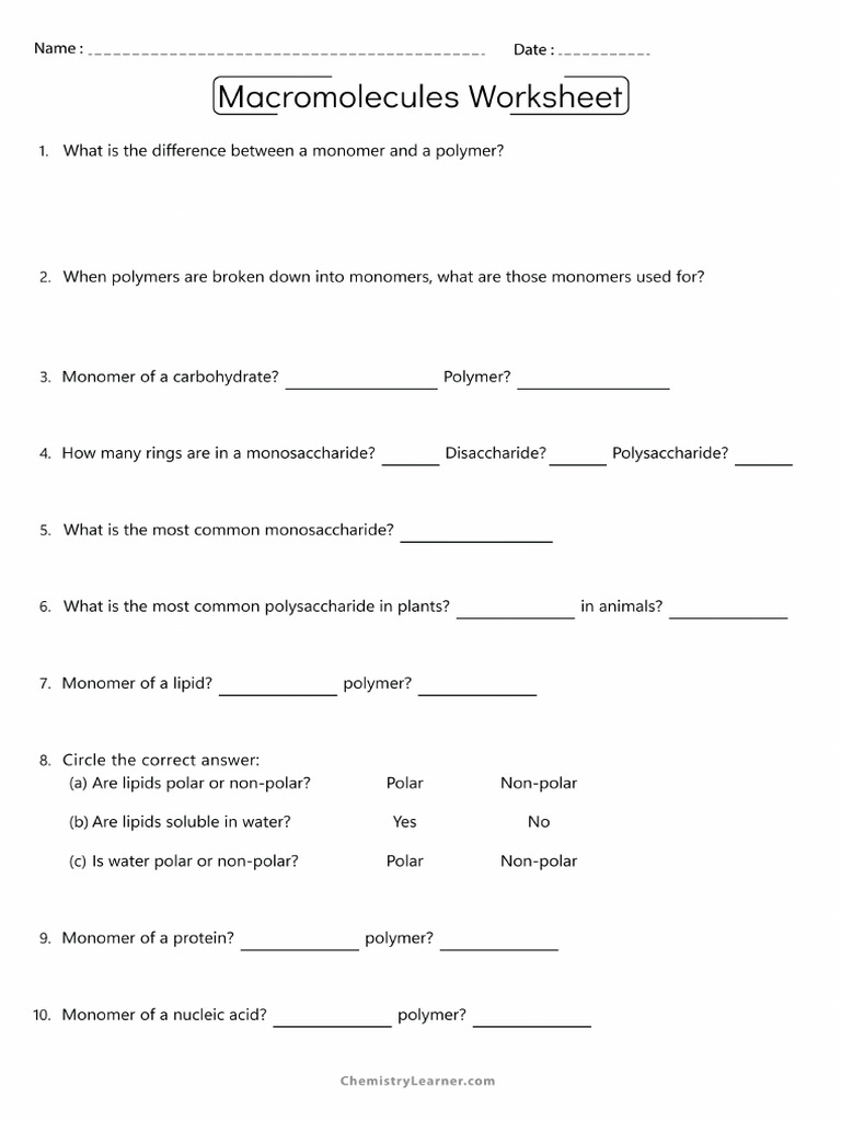11 Biology Macromolecules Worksheets And Answers Free PDF at