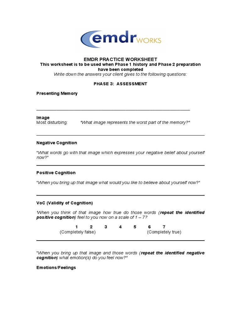 When considering each question, encourage clients to answer from a place of being “at their worst.” we are looking for what they do when they are under. Listed below are pdf files of worksheets by emdr consulting to assist you in emdr case conceptualization, processing, and. Teach two very different preparations for doing emdr with people with dissociative disorders twombly.