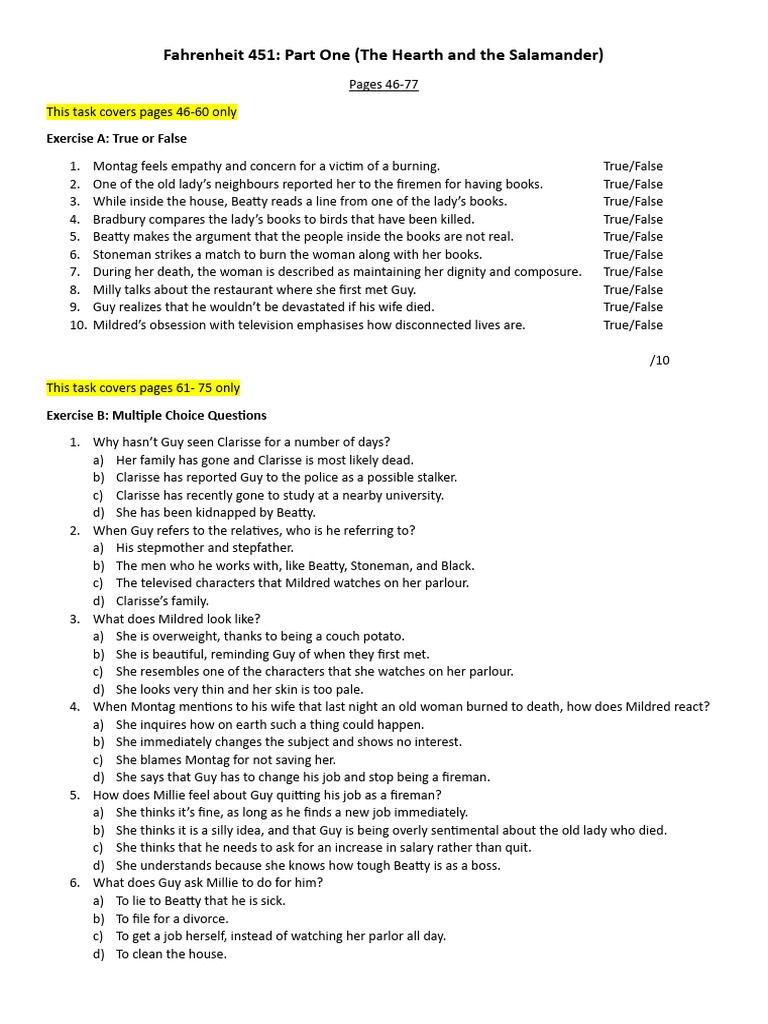 This guide to fahrenheit 451 is designed to provide teachers with resources and activities to introduce themes and activate background knowledge. Our fahrenheit 451 worksheets offer an engaging and insightful exploration of ray bradbury’s classic novel, providing students with the tools they need. You will be scored using the rubric that follows,. It depicts a future american society that prohibits..