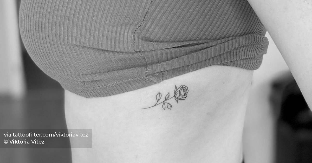 Fine line rose tattoo on the rib.