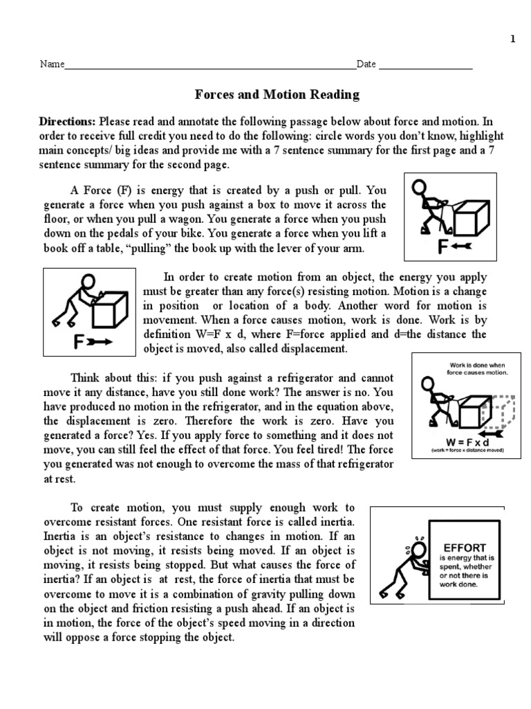Forces Of Motion Worksheets Download Printable Force And Mot