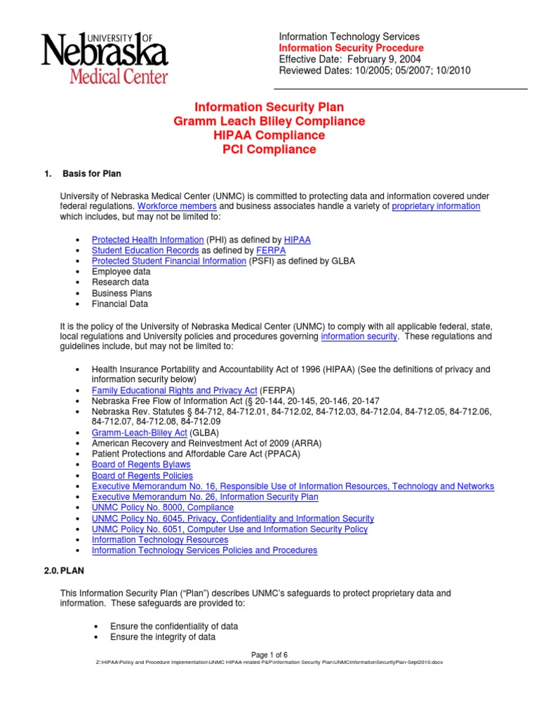 Information Security Plan Gramm Leach Bliley Compliance HIPAA