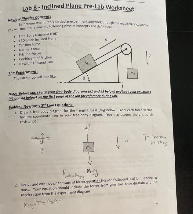 Solved Lab 8 Inclined Plane PreLab Worksheet Review