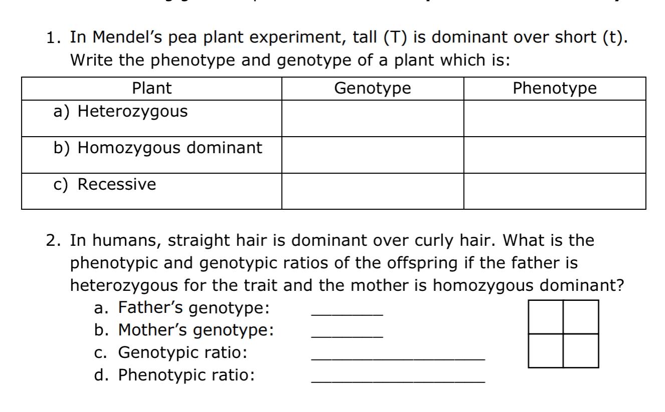 Solved 1. In Mendel's pea plant experiment, tall (T) is