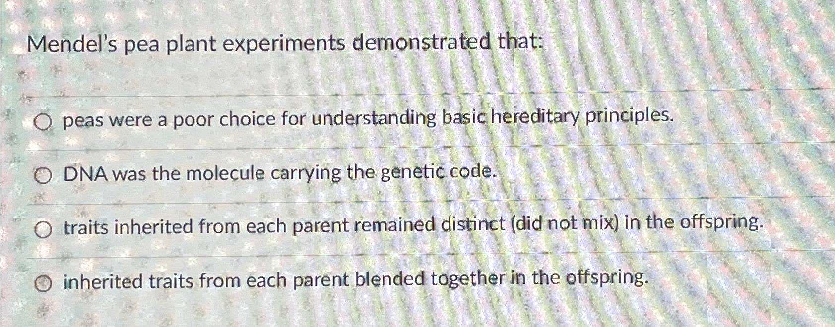 Solved Mendel's pea plant experiments demonstrated thatpeas