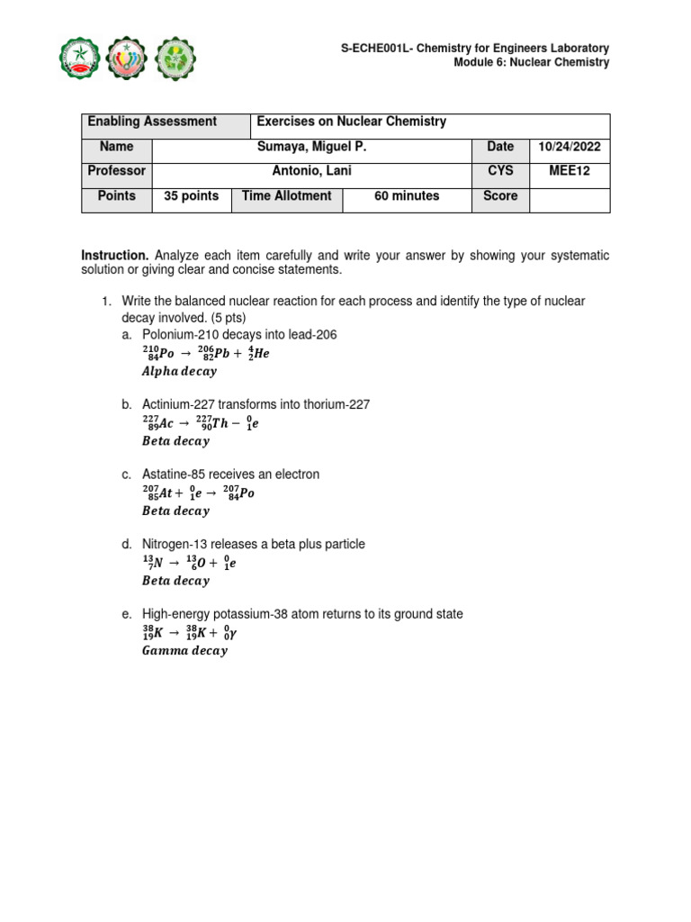 Nuclear Decay Worksheet With Answers Printable Worksheets and