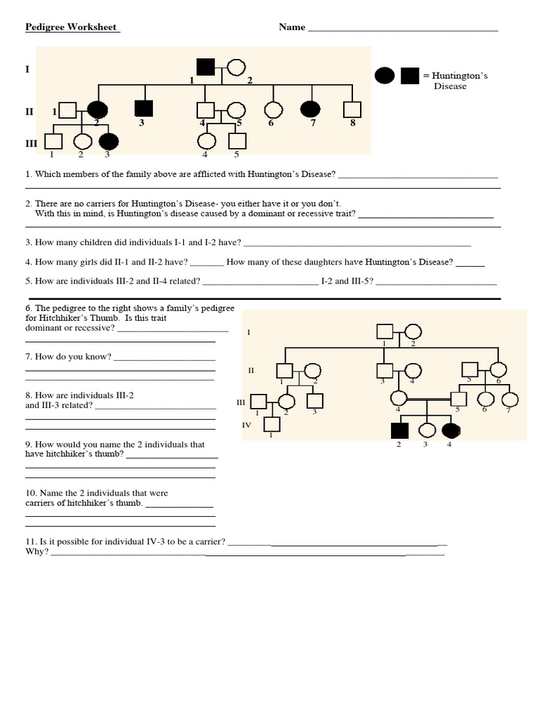 Pedigree Questions And Answers Pedigree Chart Worksheets Wit