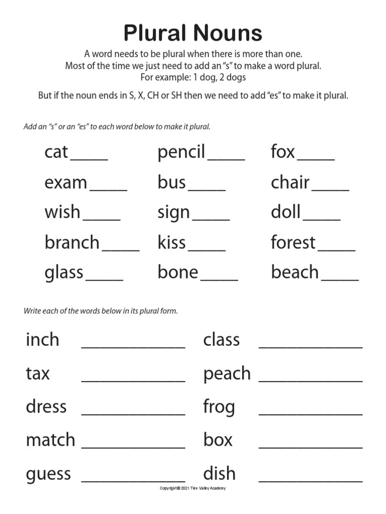 Printable Plural Nouns Worksheets For Kids Tree Valley Academy Images