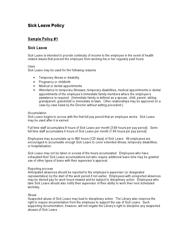 Sick Leave Policy PDF Sick Leave Employment