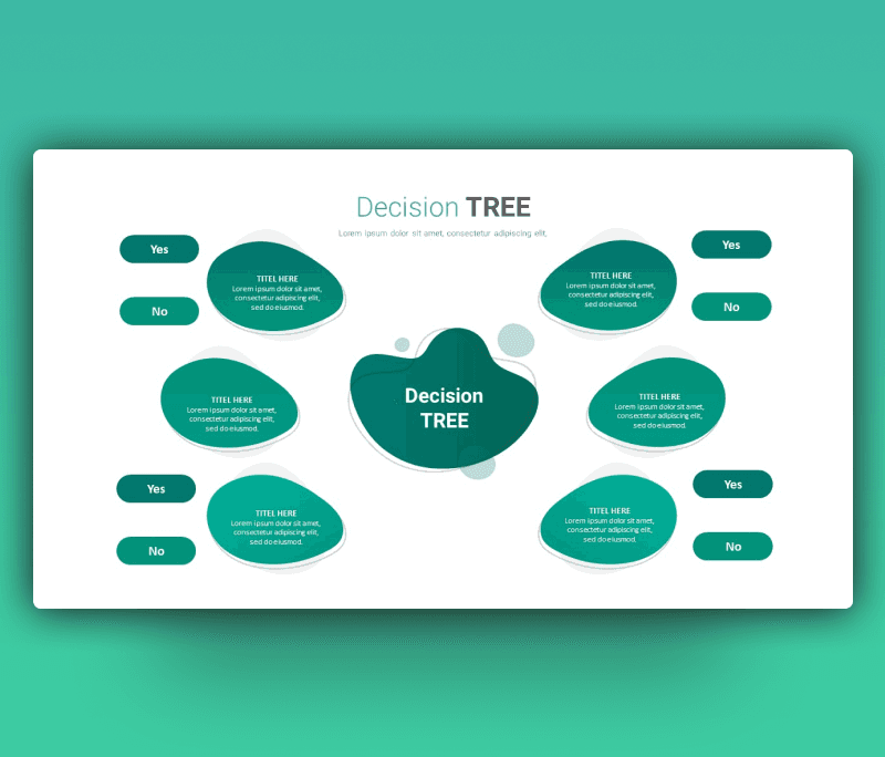 It's perfect for business strategists, project managers, or anyone needing to visualize a decision. This template is a simple yes no decision maker for powerpoint. Chance nodes are used to indicate the probability or uncertainty of an event to occur in the decision tree template. With its crisp black and white design, it brings a sharp, modern edge to presentations.